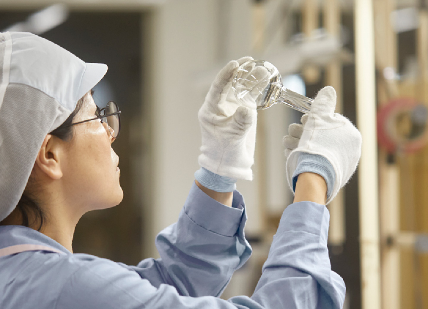 HARIO's heatproof glass has been manufactured without smokestacks since 1972 thanks to unique technology that melts glass using electricity instead of oil. The environmentally friendly process was ahead of its time and proved that glass factories didn’t have to be smoky and dusty. Our pollution-free factory doesn’t affect the local environment and provides a comfortable workplace for employees.