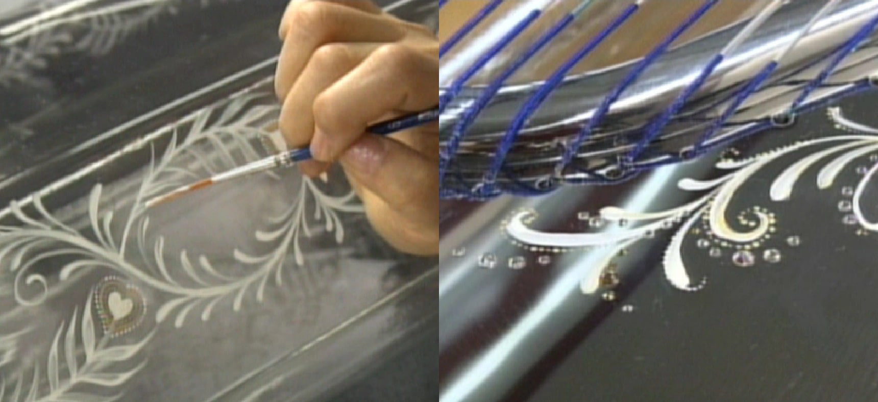 This glass guitar was created to commemorate recovery from the March 11, 2011 earthquake in Japan. It’s the world's first performance-ready glass classical guitar and was created by 10 skilled craftsmen at a total production cost of around 10 million yen. While based on a European model from the 19th century, the body is somewhat smaller. Glass thickness ranges from 2.5 to 3.0mm and total weight is around 3.7kg. Hand-painted decoration and a delicate design bring out the beauty of the glass. We began molding the glass in September 2011 and then spent about a year adjusting the acrylic neck and sound before achieving success in October 2012. Tuning was supervised by popular guitarist Kaori Muraji to achieve a new, enjoyable sound that is different from wooden guitars.
