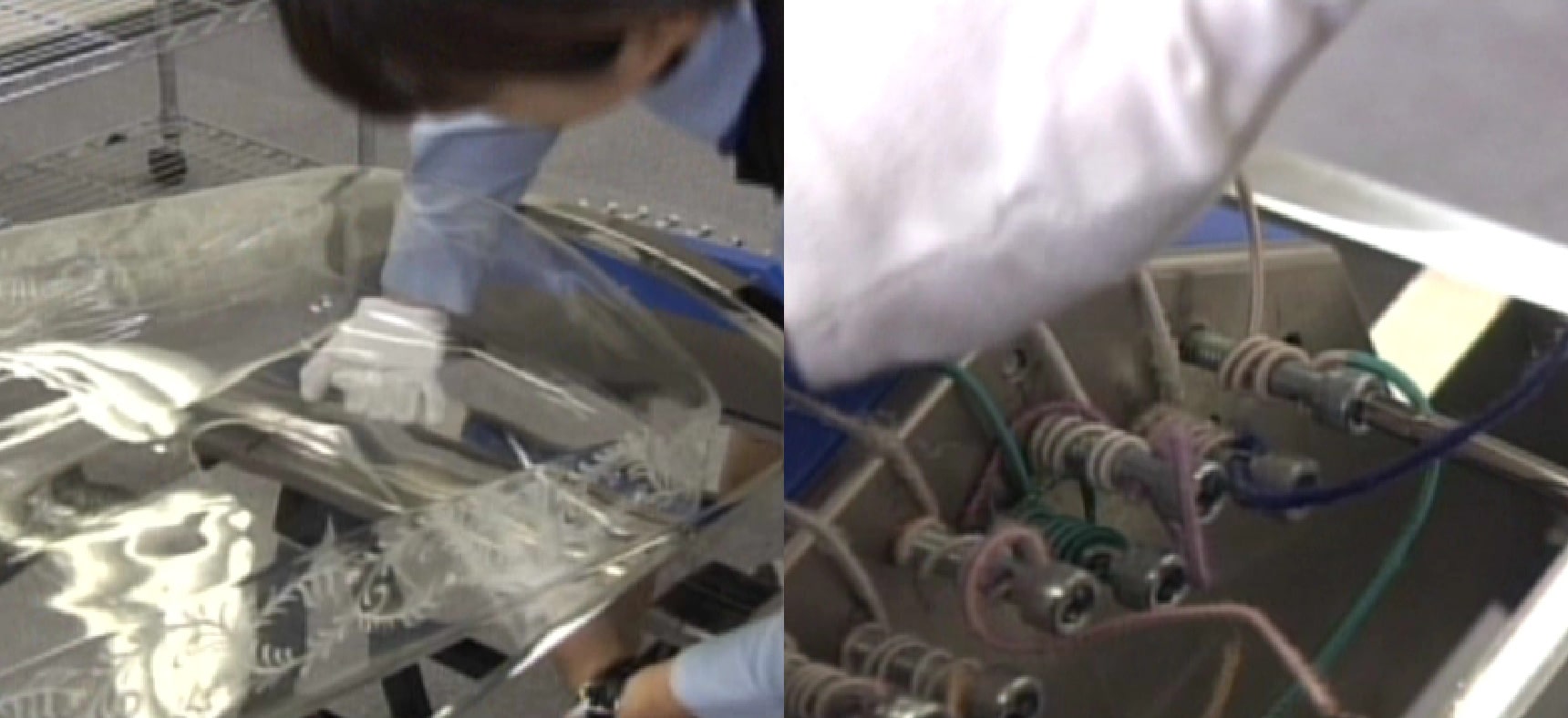 After making the glass violin, we considered other combinations of technology and art and decided to leverage our best technology to complete the world's first glass cello. The basic production process was the same as for the violin, but the much larger size made the cello more of a challenge. Through trial and error, we molded over 40 bodies before finally completing a single glass cello. Made of heatproof glass, the Hario Glass Cello weighs around 11kg (versus approx. 3kg for a wooden cello).