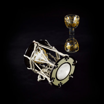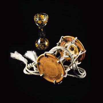 In 2010, we created traditional Japanese drums (small and large) and flutes made of glass. Since the sound quality of the drums differed greatly depending on the design of the leather on the left and right sides, we tested several variations to achieve the best sound quality. Please enjoy the special sound quality and beauty of glass Japanese instruments.