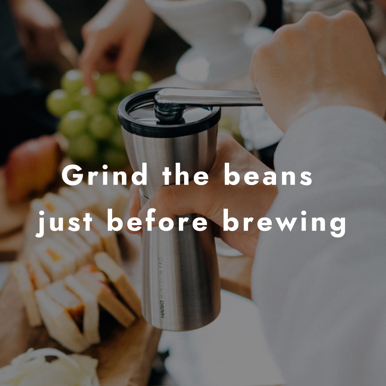 The handle of this grinder can be secured by simply inserting it into the shaft. The ground coffee can be easily stored in the large-capacity glass container, which comes with a separate lid. This grinder is recommended for those who enjoy their coffee with many people, as you can grind a lot of coffee at once!
