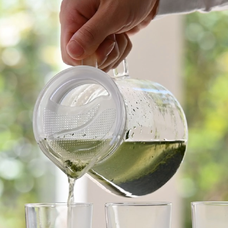 The spout with a filter lets you pour tea easily with just one hand.