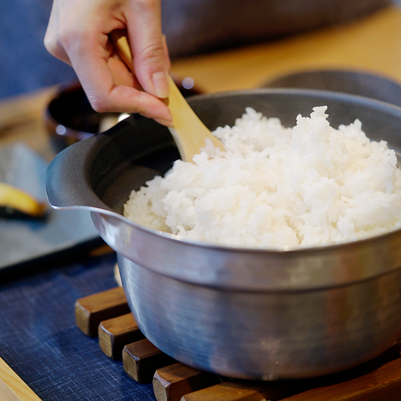 The fluoride-coated non-stick surface prevents rice from sticking.