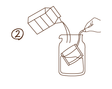 Use a spoon to push the pack into the milk while holding the string.