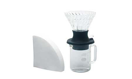 This dripper extracts coffee after immersing ground coffee in hot water.