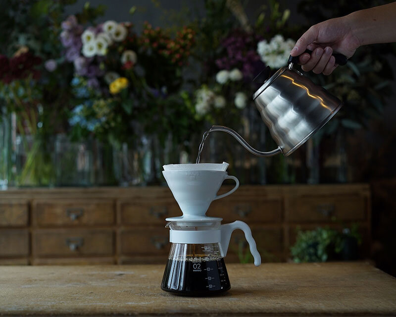 The V60 has a conical shape for deeper layering of the coffee grounds, producing a rich umami flavor.