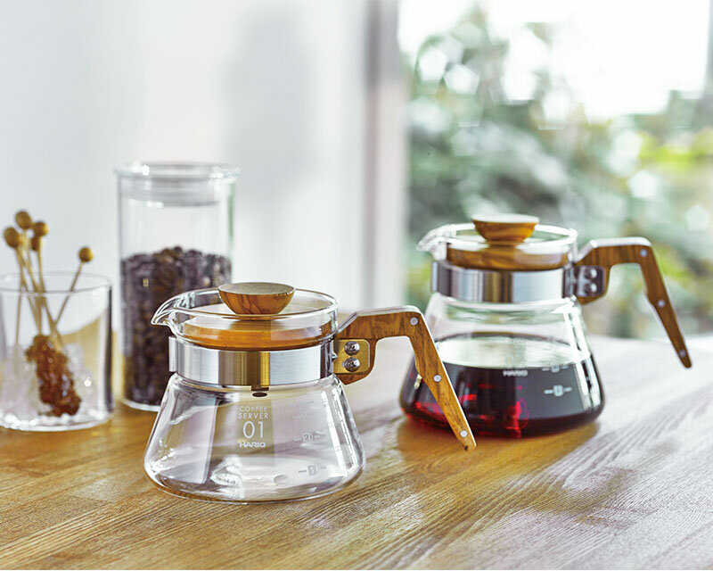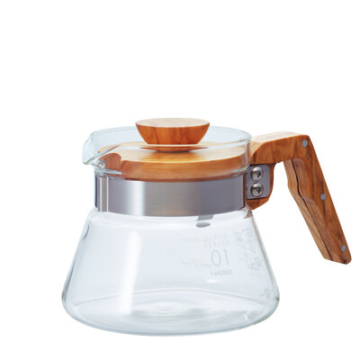 The lid and handle of this coffee server are made from olive wood, adding a stylish touch to your coffee break.