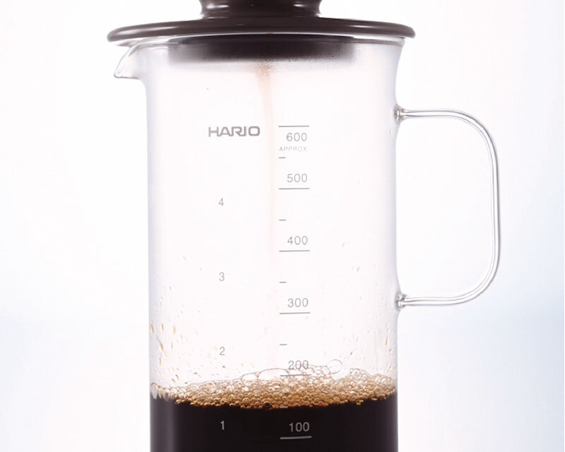 The beaker features a scale that indicates extraction volume in cups, an easy-to-hold handle for smooth pouring and a sharp pouring spout.