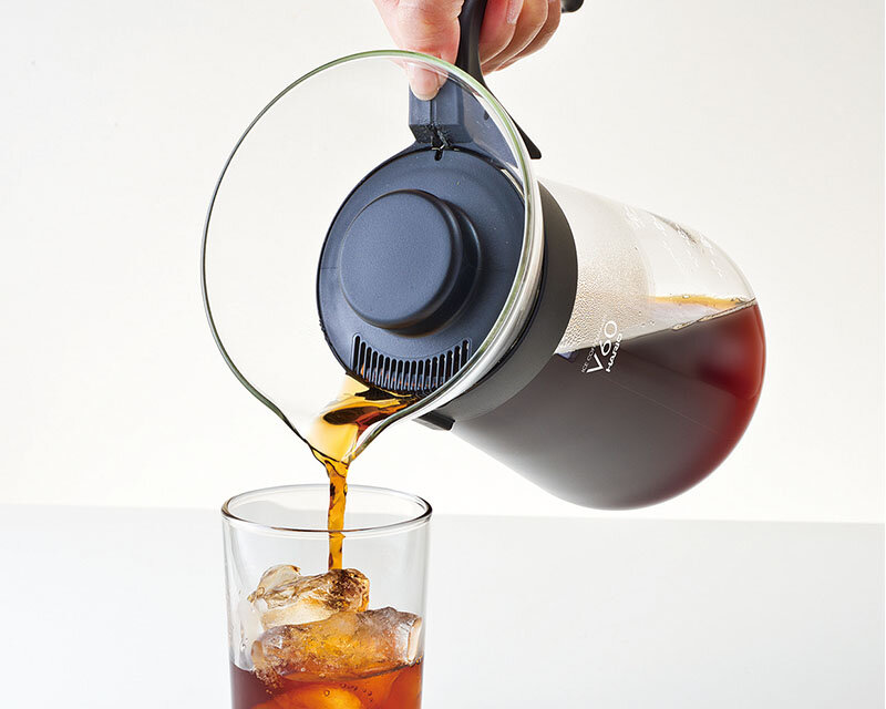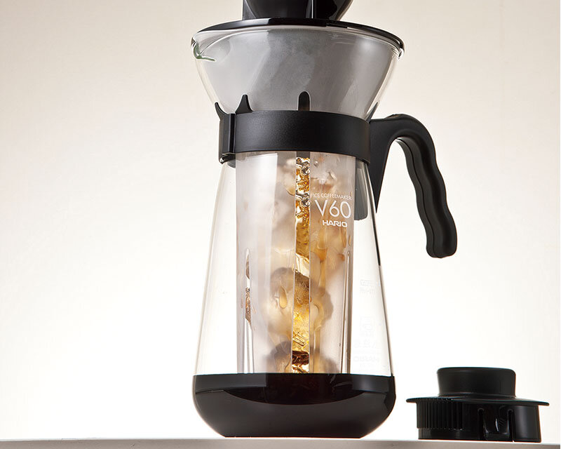 A long ice strainer rapidly cools the dripped coffee, so that iced coffee can be enjoyed immediately.