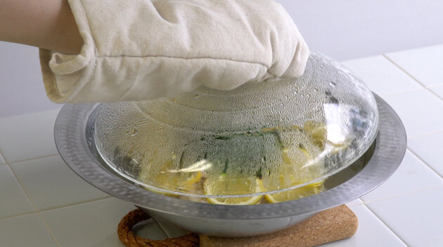 The heatproof glass lid allows you to watch your dish as it cooks and see when it's ready to eat.