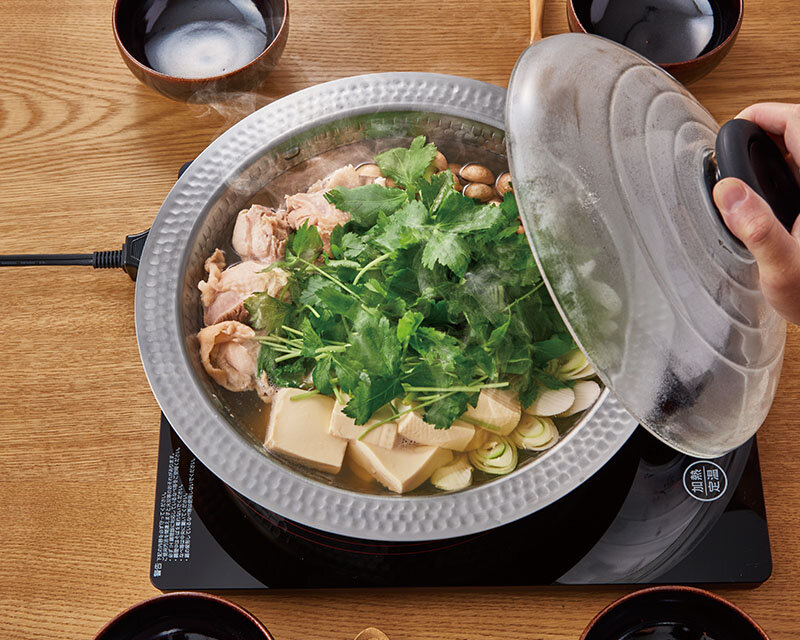 Beautifully-designed stainless steel cooking pot that can be used with induction cooktops.