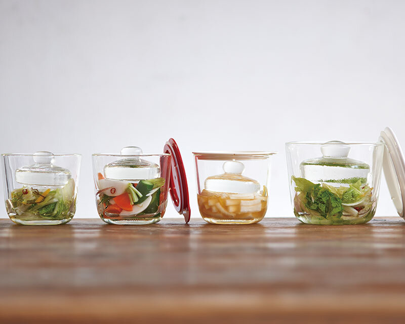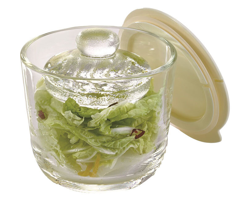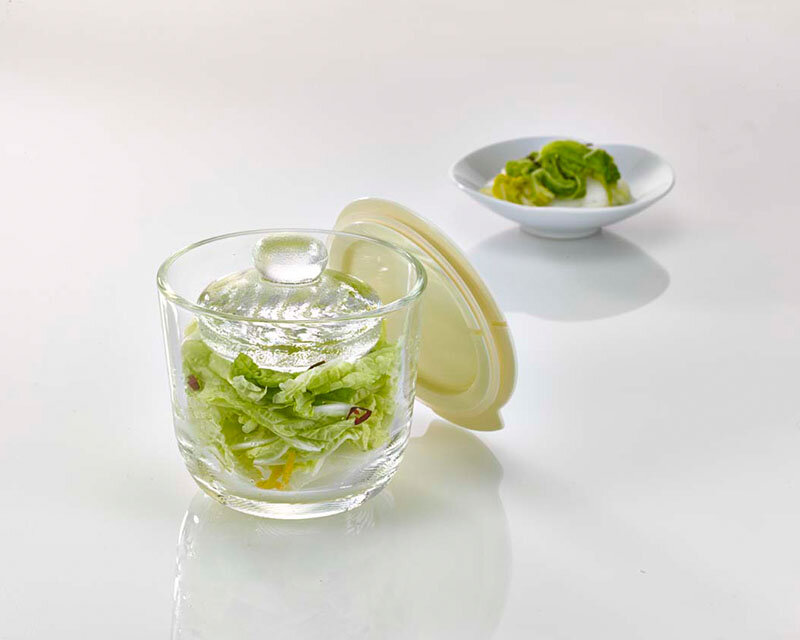 Due to its clear and simple design, the glass overnight salting bowl enables you to see the colorful vegetables, which makes it look nice even on the dinner table.