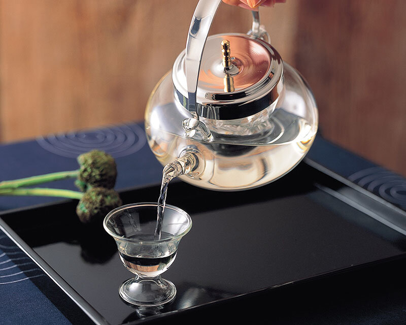 Because the sake cooler is made with a heatproof glass, the sake can be beautifully decorated on the table.