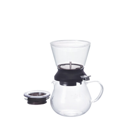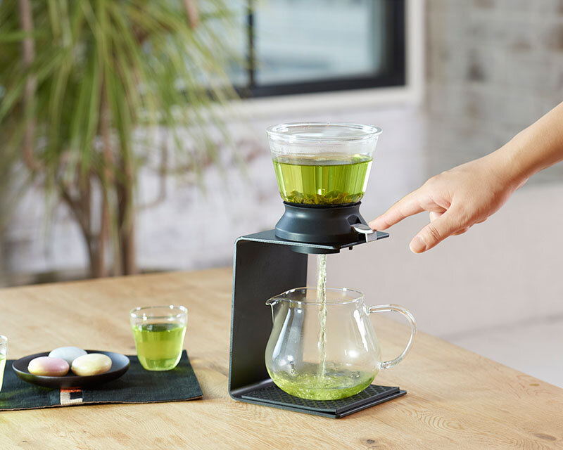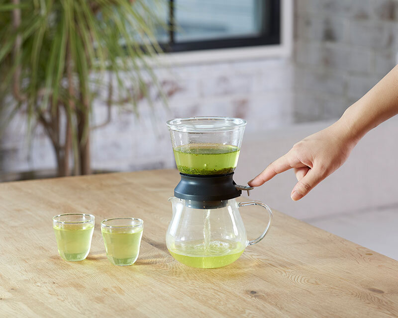 After brewing in the tea dripper, press the switch and the tea pours down to the server all at once.